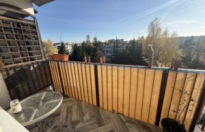 Mieszkanie składa się trzech pokoi, kuchni, oddzielnej łazienki i WC oraz obszernego przedpokoju z szafą w zabudowie. Kuchnia w zabudowie z kuchenką gazową. Do mieszkania przynależy również piwnica. Z pewnością dużym atutem lokalu jest również duży słoneczny balkon służący wypoczynkowi.