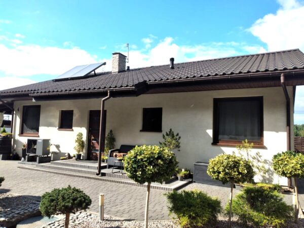 Media: prąd 3- fazowy, instalacja fotowoltaiczna – 9,77 kWp , ogrzewanie podłogowe- pompa ciepła Heiko 6kW, klimatyzacja, woda- miejska, typ kanalizacji- własna oczyszczalnia.